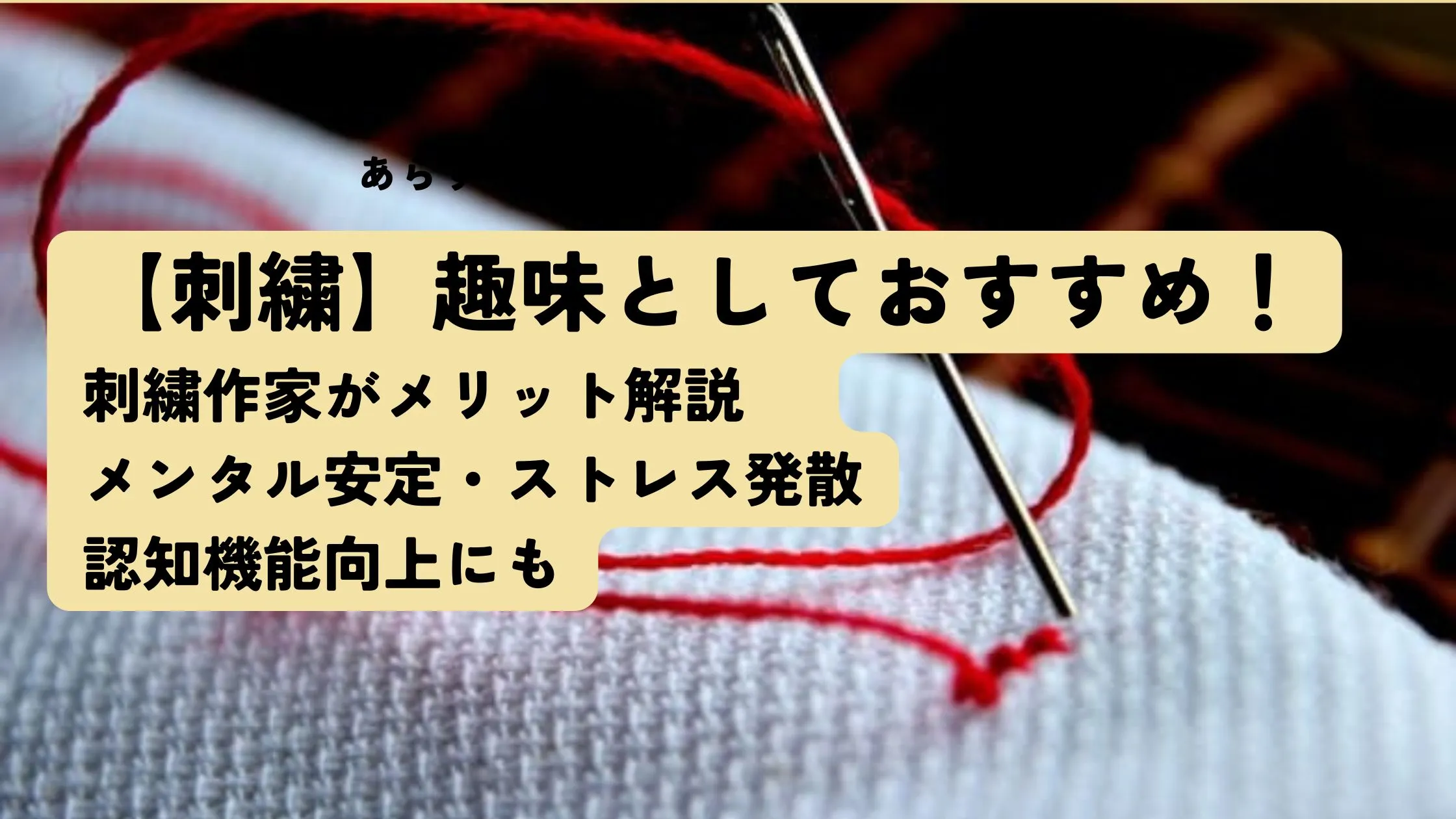 趣味が欲しい人はもちろん、ストレスを溜めやすい人、マルチタスクで心の余裕が持てない人などにも、瞑想と似たような効果が得られる刺繍はとてもおすすめです。